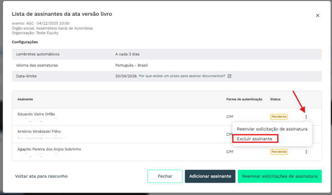 - Como adicionar e remover assinantes de uma ata enviada para assinatura