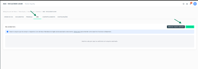 Nessa sessão, é possível fazer aas devidas modificações (exceto excluir o requisito de Assinatura da ata).
