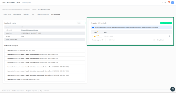 Observação: a ata assinada é o único requisito obrigatório em qualquer evento, não sendo possível sua exclusão. É possível editá-la para definir a data limite do seu cumprimento (clicando nos 3 pontinhos ao seu lado direito):