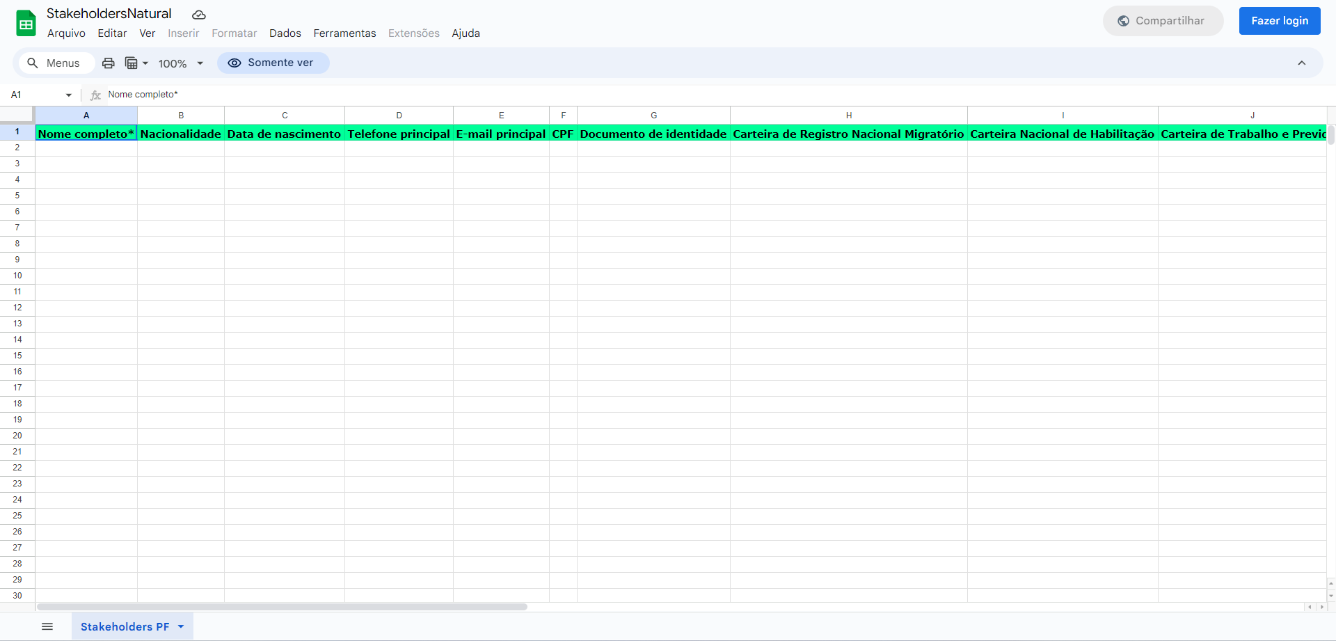 - O que é: adicionar stakeholders em lote a partir de um arquivo XLSX (formato padrão do Microsoft Excel e do Google Sheets).