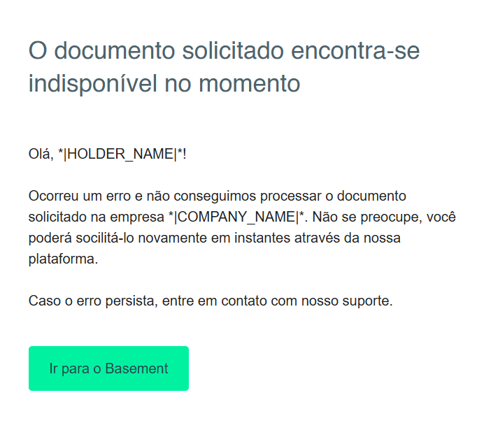 Relação dos e-mails e notificações automáticas enviadas pelo Basement