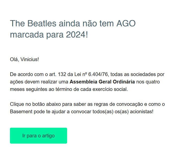Caso você precise de mais informações sobre regras de envio ou conteúdo de alguma notificação, entre em contato com o atendimento Basement.