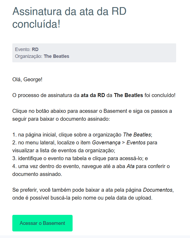 - Lembrete de assinatura de Ata (Usuários Admins, Espectadores e Perfis Personalizados)