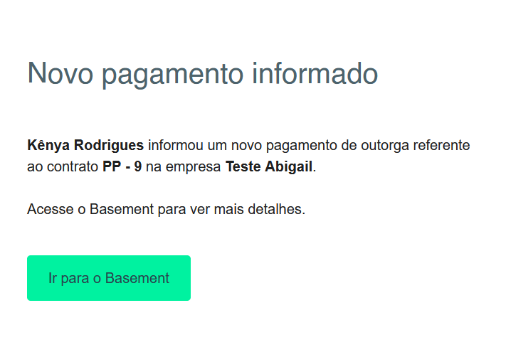- Holder informou pagamento de parcela de outorga (Usuários Admins, Espectadores e Perfis Personalizados)