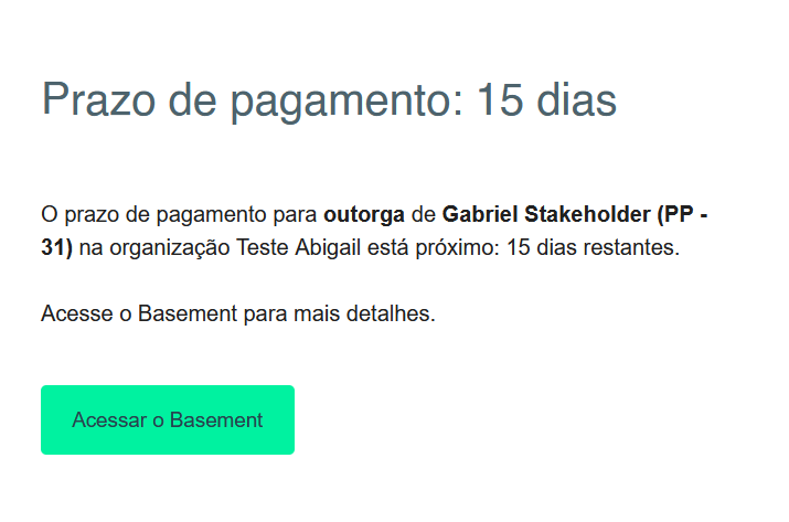 - Prazo de pagamento de outorga/exercício/recompra próximo (Stakeholder) - Em breve